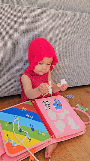 Образователна книжка „Busy Book“ Монтесори – занимателни игри за деца (2–6 години)