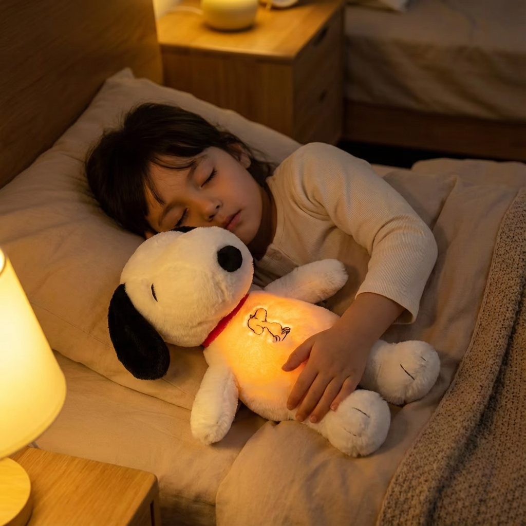 Комбинацията от реално дишане, мека текстура, светлина и звук създава успокояващ ритуал за по-лесно заспиване и по-дълбок сън